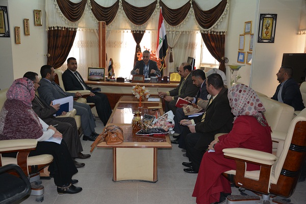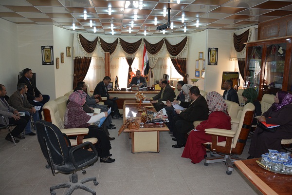 التقى مساعد رئيس الجامعة للشؤون الادارية الاستاذ الدكتور عامر محمد ابراهيم معاوني عمداء الكليات للشؤون الادارية ومدراء الشعب الادارية ومسؤولي الوحدات الادارية (التقاعد ،الموارد البشرية ،التوظيف والملاك ،المعلوماتية )