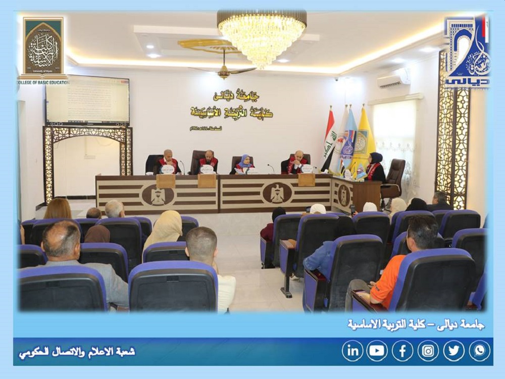 ناقشت كلية التربية الاساسية في جامعة ديالى رسالة الماجستير الموسومة بـ (التفكير الواقعي والوعي الموقفي وعلاقتهما بالتحصيل الاكاديمي لدى طلبة قسم التاريخ في الجامعة المستنصرية) في تخصص طرائق تدريس التاريخ .