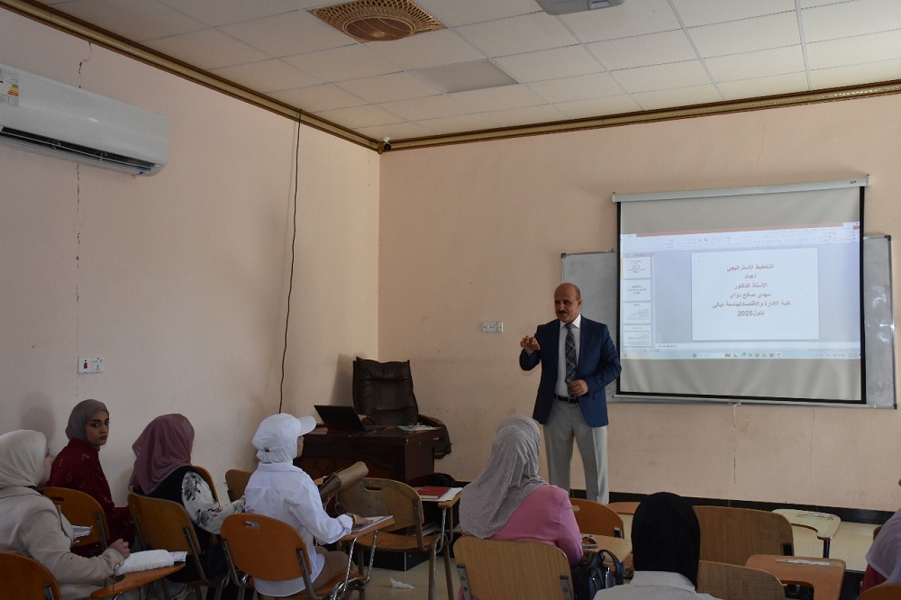 اقام قسم الاقتصاد في كلية الإدارة والاقتصاد بجامعة ديالى وضمن دور الجامعات في تطبيق استراتيجية الامن الوطني للعام 2025-2030 ورشة بعنوان (التخطيط الاستراتيجي ومتطلبات الأمن الوطني) حاضر فيها الأستاذ الدكتور مهدي صالح دواي .