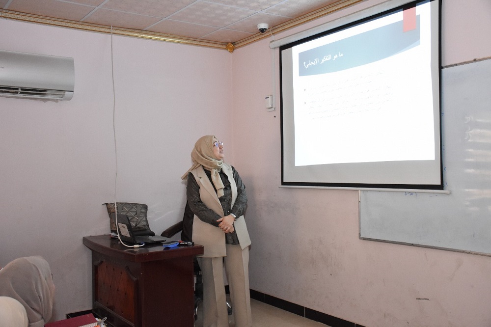 بينت الورشة أن التفكير الإيجابي هو أسلوب ذهني يركز على رؤية الفرص بدلاً من العقبات، وعلى النظر إلى نصف الكوب الممتلئ بدل الفارغ ويساعد التفكير الإيجابي على التقليل من التوتر والقلق، ويزيد من القدرة على التعامل مع ضغوط الحياة بطريقة صحية.