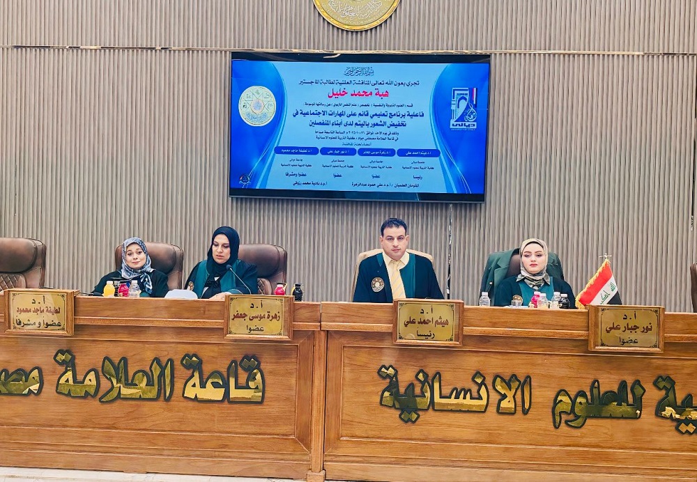 كلية التربية للعلوم الانسانية تناقش فاعلية برنامج تعليمي قائم على المهارات الاجتماعية في تخفيض الشعور باليتم لدى أبناء المنفصلين