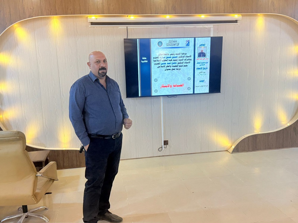 ضمن سلسلة الأنشطة العلمية الهادفة إلى نشر ثقافة الإبداع والتطوير اقام قسم العقيدة والفكر الاسلامي في كلية العلوم الإسلامية بجامعة ديالى ورشة عمل بعنوان (الصناعة والابتكار ودورهما في تحقيق التنمية المستدامة) ، ادارها المدرس المساعد علي عزيز احمد .