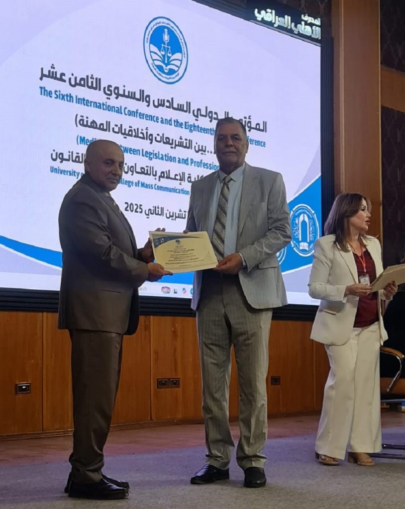 وأشاد السيد عميد كلية التربية الأساسية الاستاذ المساعد الدكتور ايمن عبد عون بهذه المشاركة العلمية المتميزة، مثمنًا الدور الفاعل لمدير شعبة الإعلام في تعزيز حضور الكلية في المحافل العلمية الدولية والمحلية، ومؤكدًا أن هذه الإسهامات البحثية تعكس مستوى الكفاءة العلمية والجهود التطويرية في مجال الإعلام والاتصال الحكومي داخل الكلية.