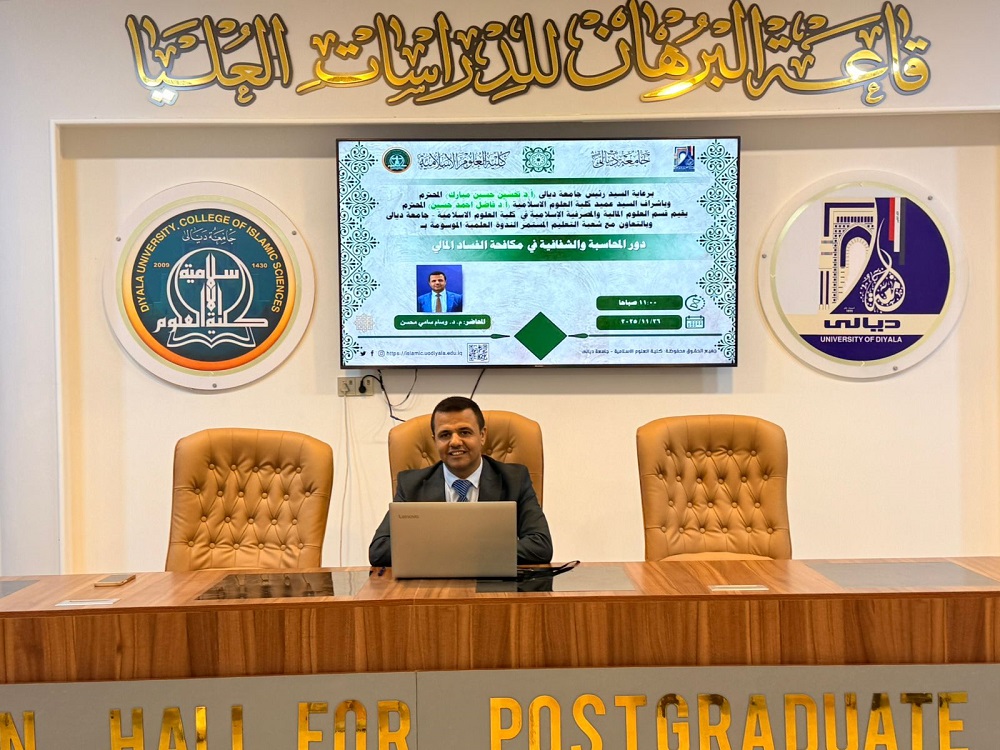 نظم قسم العلوم المالية والمصرفية في كلية العلوم الإسلامية بجامعة ديالى ندوة علمية بعنوان (دور المحاسبة والشفافية في مكافحة الفساد المالي ) حاضر فيها المدرس المساعد وسام سامي محسن .