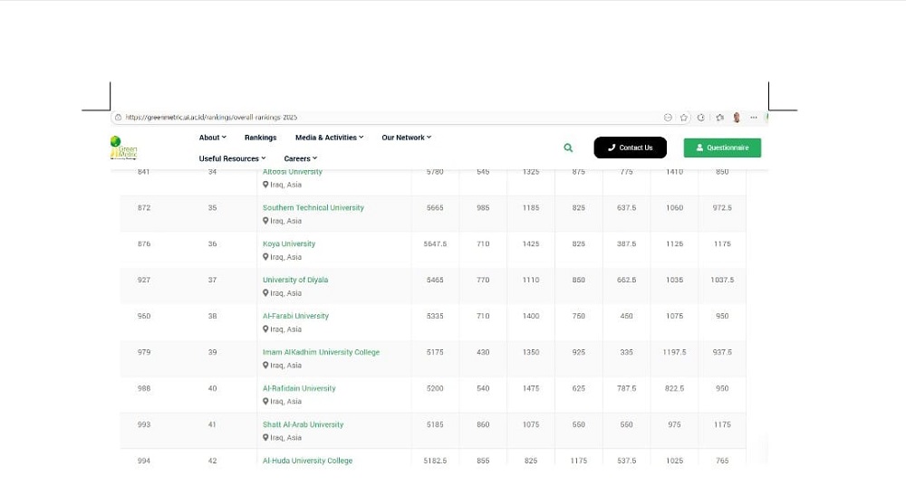 جامعة ديالى تواصل ريادتها البيئية وتحجز مكانها للسنة السابعة في تصنيف UI GreenMetric العالمي للتنمية المستدامة 2025