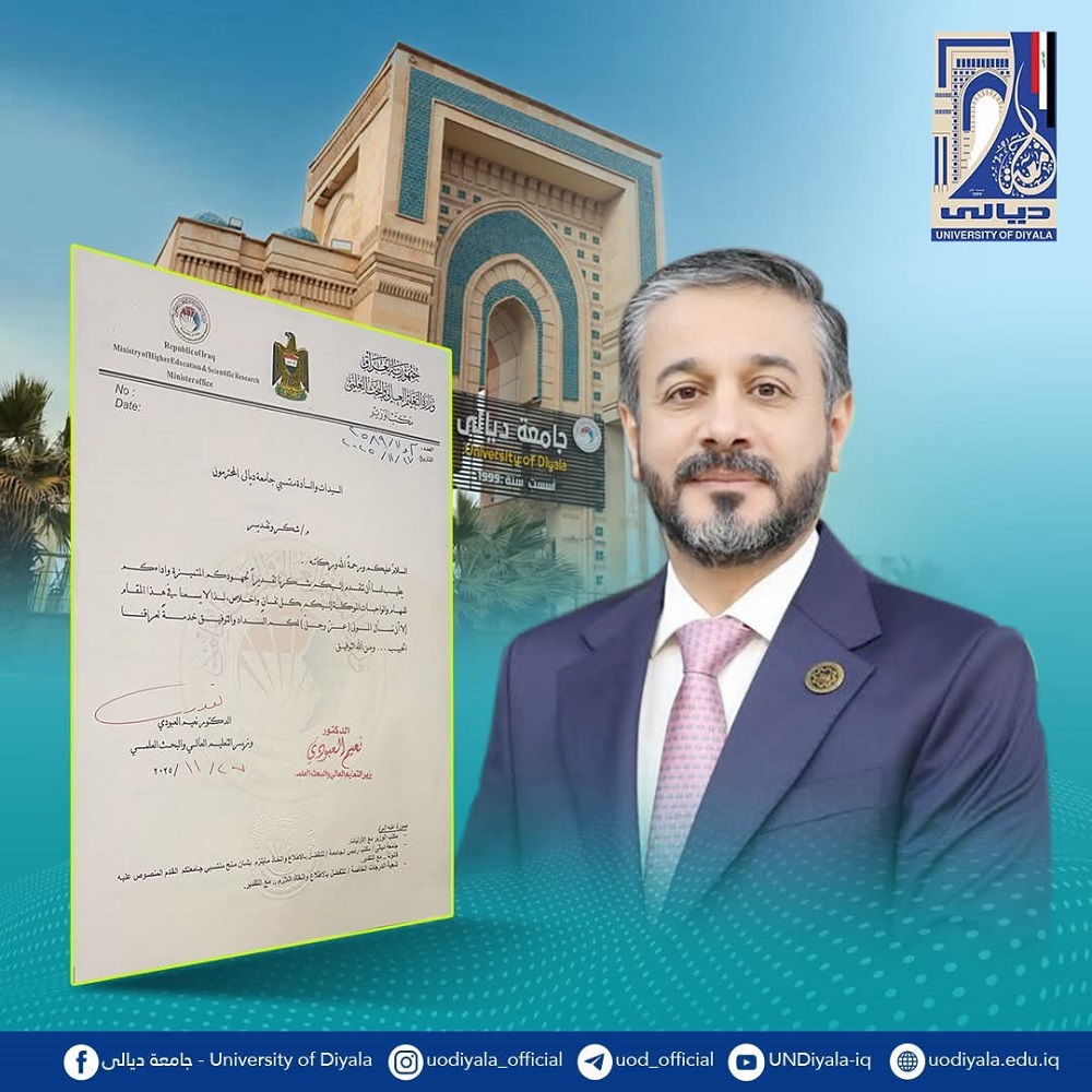 حازت جامعة ديالى على كتاب شكر وتقدير من معالي وزير التعليم العالي والبحث العلمي الأستاذ الدكتور نعيم العبودي، تثميناً لما قدمته من جهود كبيرة ومتميزة على مختلف الأصعدة العلمية والإدارية والخدمية، ومساهمتها الفاعلة في خدمة المجتمع والارتقاء بقطاع التعليم العالي.