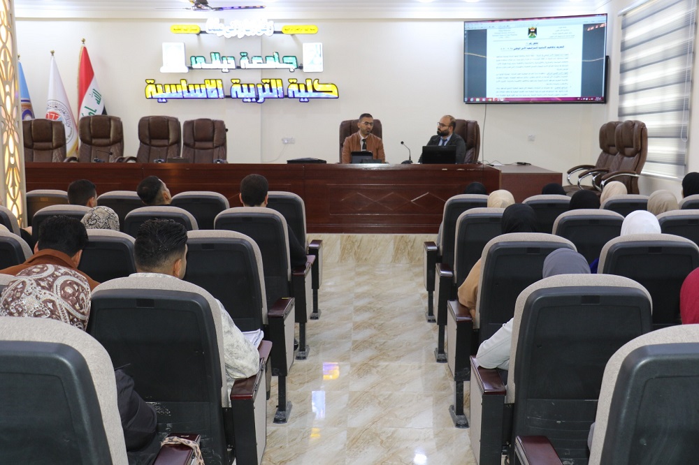 نظمت كلية التربية الأساسية بجامعة ديالى بالتعاون مع شعبة التعليم المستمر وشعبة الإعلام والاتصال الحكومي، ندوة علمية تخصصية بعنوان: “قراءة في استراتيجية الأمن الوطني العراقي 2025 – 2030″، أدارها المدرس المساعد أحمد صادق المندلاوي، وحاضر فيها المدرس الدكتور تميم عماد صادق.