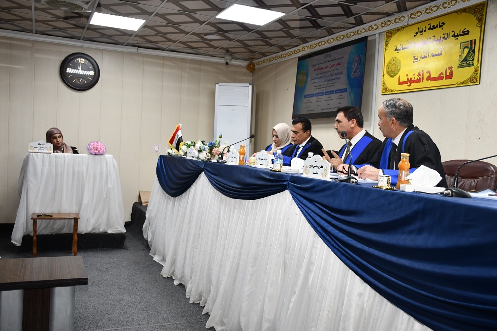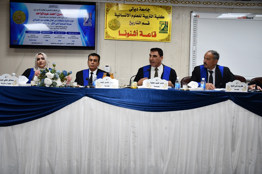 ناقشت كلية التربية للعلوم الانسانية ، بجامعة ديالى رسالة الماجستير في التاريخ الاسلامي ، والموسومة بـ (الموارد المالية والنفقات من خلال كتاب أسد الغابة في معرفة الصحابة لابن الأثير (ت 630ه/ 1233م)) .