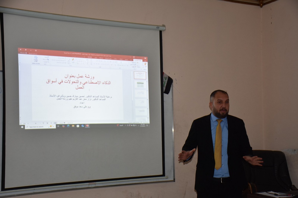 اقام قسم الاقتصاد في كلية الإدارة والاقتصاد بجامعة ديالى ورشة عمل بعنوان (الذكاء الاصطناعي والتحولات في أسواق العمل) ، حاضر فيها المدرس المساعد علي سعد موفق.