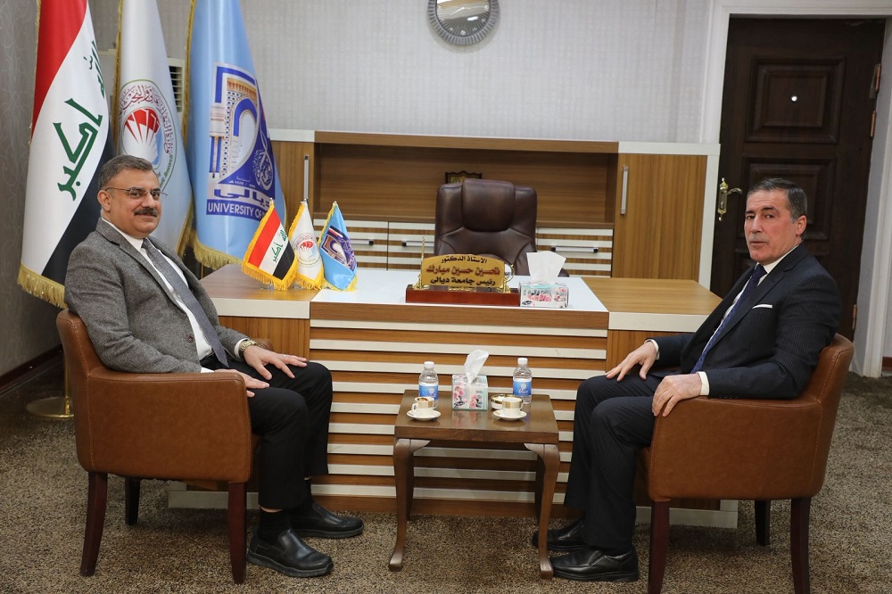 استقبل رئيس جامعة ديالى الأستاذ الدكتور تحسين حسين مبارك اليوم الأحد الموافق 28/ 12/ 2025 رئيس فرع جامعة الإمام جعفر الصادق (ع) في ديالى الدكتور يونس إبراهيم، لبحث سبل فتح آفاق التعاون المشترك بين المؤسستين الأكاديميتين بما يخدم المسيرة العلمية والبحثية في المحافظة والعراق عموماً.