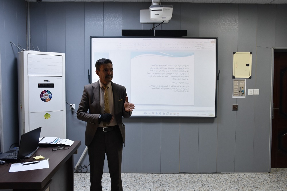 برعاية السيد رئيس الجامعة الأستاذ الدكتور تحسين حسين مبارك وبإشراف السيد عميد كلية الادارة والاقتصاد الأستاذ المساعد الدكتور نزار معن عبد الكريم ، اقام قسم الادارة العامة ورشة بعنوان (القران الكريم دستور ومنهج للحياة) ، حاضر فيها الأستاذ المساعد الدكتور كريم صيهود كرم.