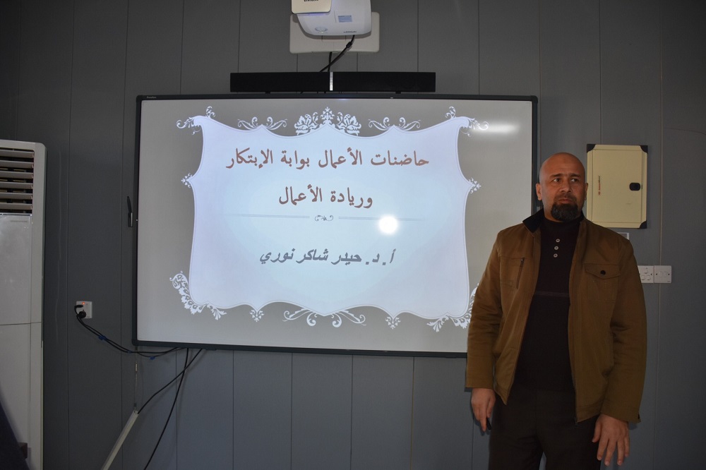 أقام قسم الإدارة العامة في كلية الإدارة والاقتصاد بجامعة ديالى دورة تدريبية بعنوان (حاضنات الأعمال بوابة الابتكار وريادة الأعمال) ، حاضر فيها الأستاذ الدكتور حيدر شاكر نوري.