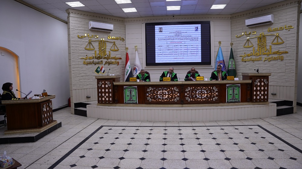 ناقشت كلية القانون والعلوم السياسية في جامعة ديالى، رسالة الماجستير الموسومة بـ ( التنظيم القانوني لحماية الصحفيين من الاختفاء القسري في ظل احكام القانون الدولي) ، للطالبة دنيا خالد شهاب.