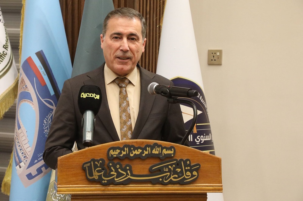 من جانبه عميد كلية التربية للعلوم الإنسانية ورئيس المؤتمر الأستاذ الدكتور لؤي صيهود التميمي، أكد على الدور المحوري الذي تضطلع به الدراسات العليا في انتاج المعرفة وبناء الوعي العلمي واستشراف الحلول الواقعية للتحديات التي تواجه الإنسان والمجتمع، مبيناً أن هذا المؤتمر يشكل منصة علمية رصينة لتلاقح الأفكار وتبادل الخبرات البحثية وفتح آفاق جديدة أمام الباحثين وطلبة الدراسات العليا، كما بين أن اللجنة العلمية في الكلية استلمت (٧٥) بحثاً مقسمة على أقسام الكلية بواقع (٢٧) بحثاً للغة العربية، و( ١٠) للجغرافية، و(٥) للغة الإنجليزية ، و( ٢٤) للتاريخ ، و(٩) للعلوم التربوية والنفسية.