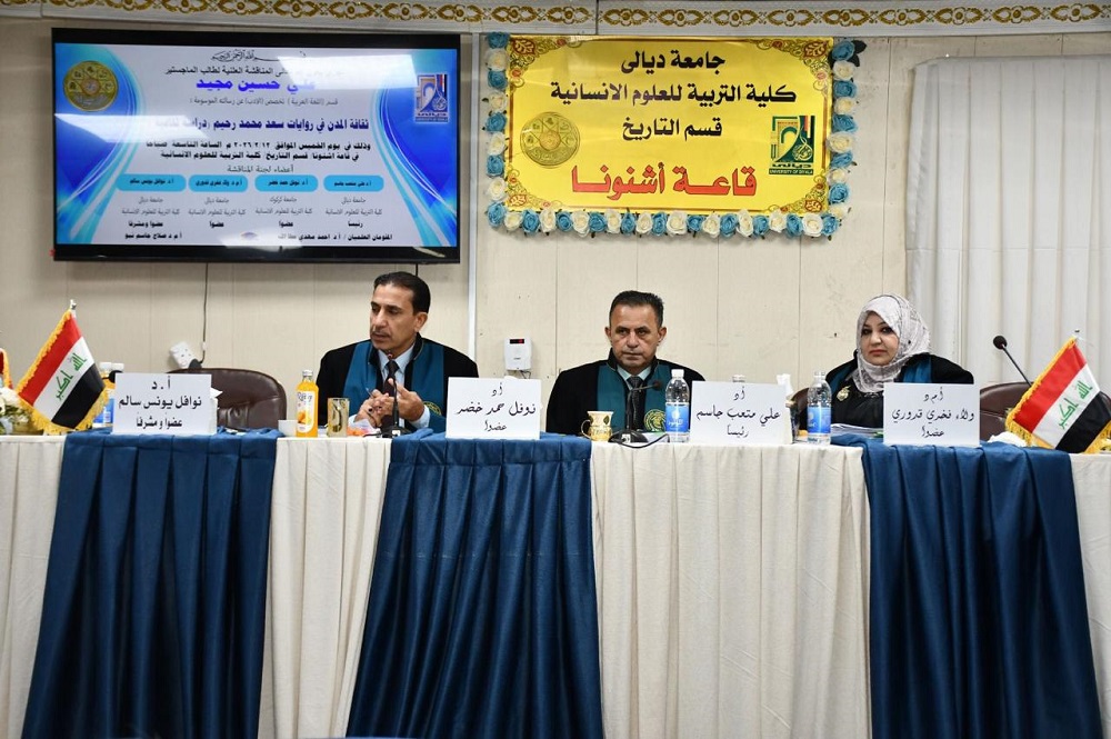 ناقشت كلية التربية للعلوم الانسانية في جامعة ديالى رسالة الماجستير في اللغة العربية، تخصص الادب، والموسومة بـ (ثقافة المدن في روايات سعد محمد رحيم (دراسة ثقافية)).
