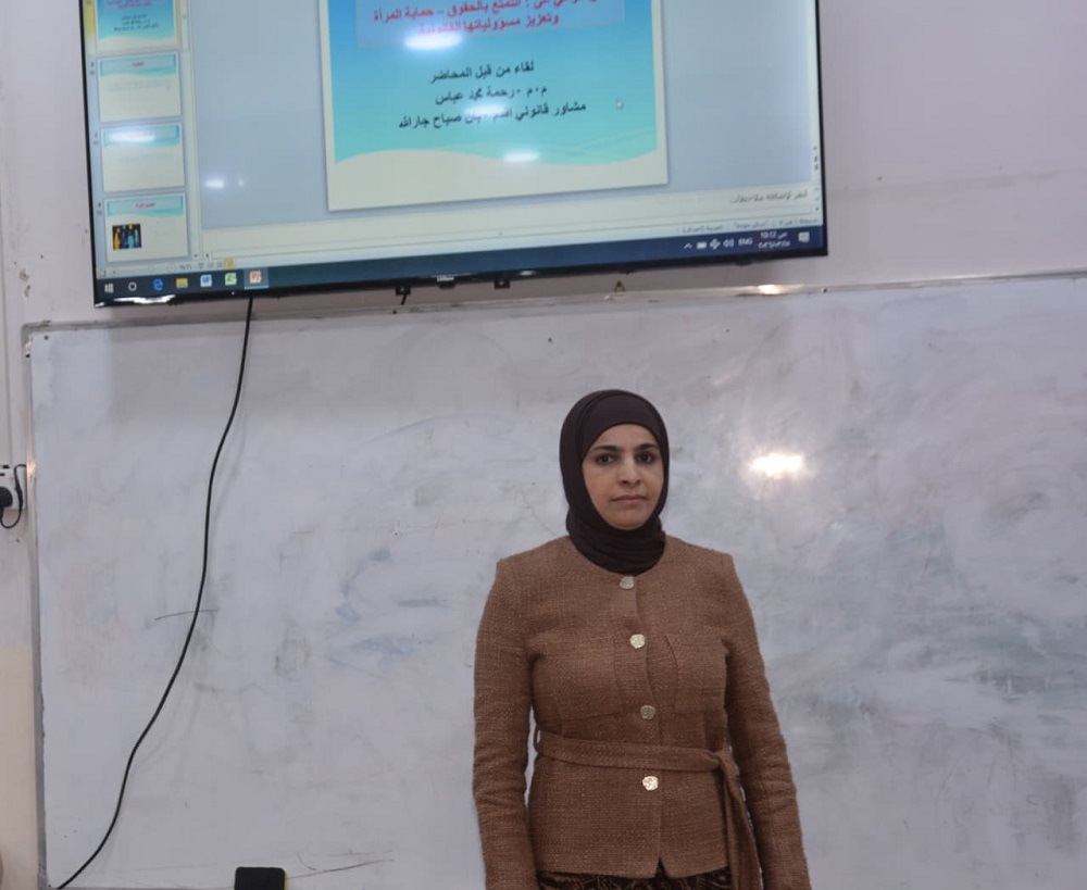 أقامت كلية طب الأسنان بجامعة ديالى وبالتعاون مع وحدة الشؤون القانونية ورشة بعنوان ( من الوعي إلى التمتع بالحقوق – حماية المرأة وتعزيز مسؤولياتها القانونية) وذلك بهدف نشر الثقافة القانونية وتعزيز وعي المرأة بحقوقها وواجباتها في المجتمع.