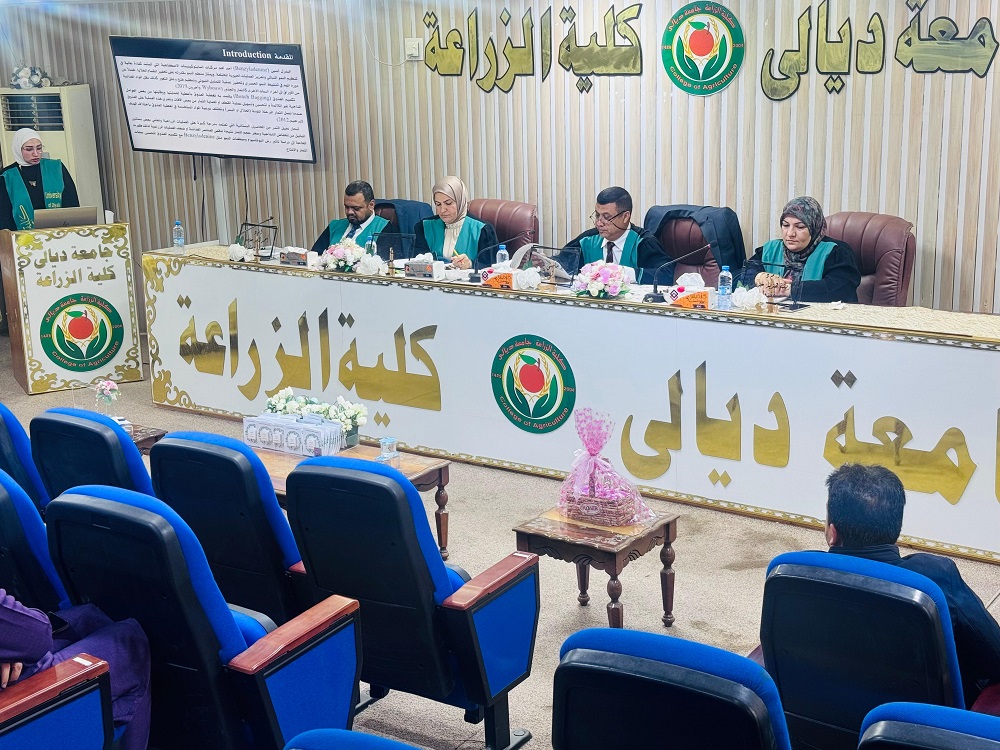 ناقشت كلية الزراعة بجامعة ديالى رسالة الماجستير الموسومة بـ (تأثير رش البوتاسيوم والبنزل ادنين والتكميم في نمو وحاصل نخلة التمر صنف بريم).
