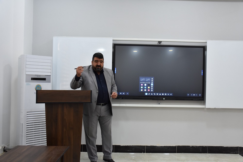 تضمنت الورشة كيفية استخدام الشاشات الذكية (Smart TV)، ونظم تشغيل متطورة (مثل Google TV في نظام Android) ودعم التطبيقات (google scholar, YouTube)، مما يوفر تجربة تعليمية متكاملة يتيح للتدريسي ان يٌبدع في تقديم المحاضرة وللطالب ان يستفيد بأفضل أسلوب.