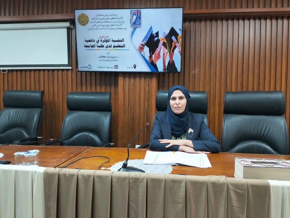 اقام قسم العلوم التربوية والنفسية في كلية التربية للعلوم الإنسانية بجامعة ديالى ندوة علمية بعنوان (العوامل النفسية المؤثرة في دافعية التعلم لدى طلبة الجامعة)، قدّمتها المدرس المساعد فردوس كاظم عبد، وذلك ضمن الأنشطة العلمية التي تهدف إلى دعم الطلبة أكاديمياً ونفسياً وتعزيز جودة العملية التعليمية.