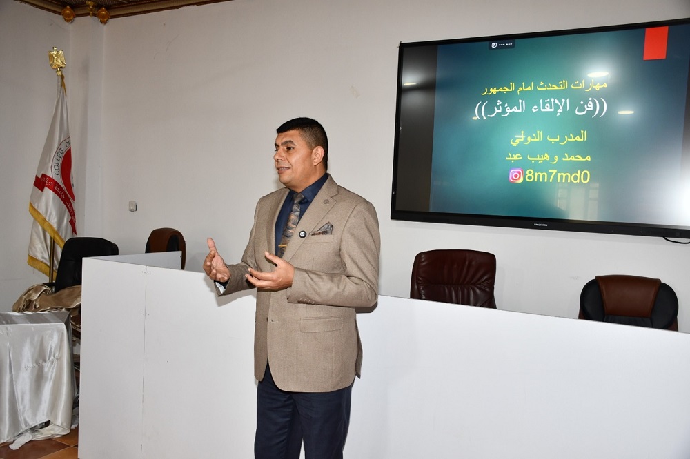 وهدفت الورشة إلى تطوير مهارات الإلقاء والتواصل لدى المنتسبين، حيث قدّم المدرب الدولي في التنمية البشرية محمد وهيب عبد مجموعة من المحاور الأساسية التي تسهم في تعزيز الثقة أثناء التحدث أمام الجمهور، متناولًا أساليب التحكم بنبرة الصوت، واستخدام لغة الجسد بفاعلية، فضلًا عن استراتيجيات إدارة التوتر أثناء الإلقاء.