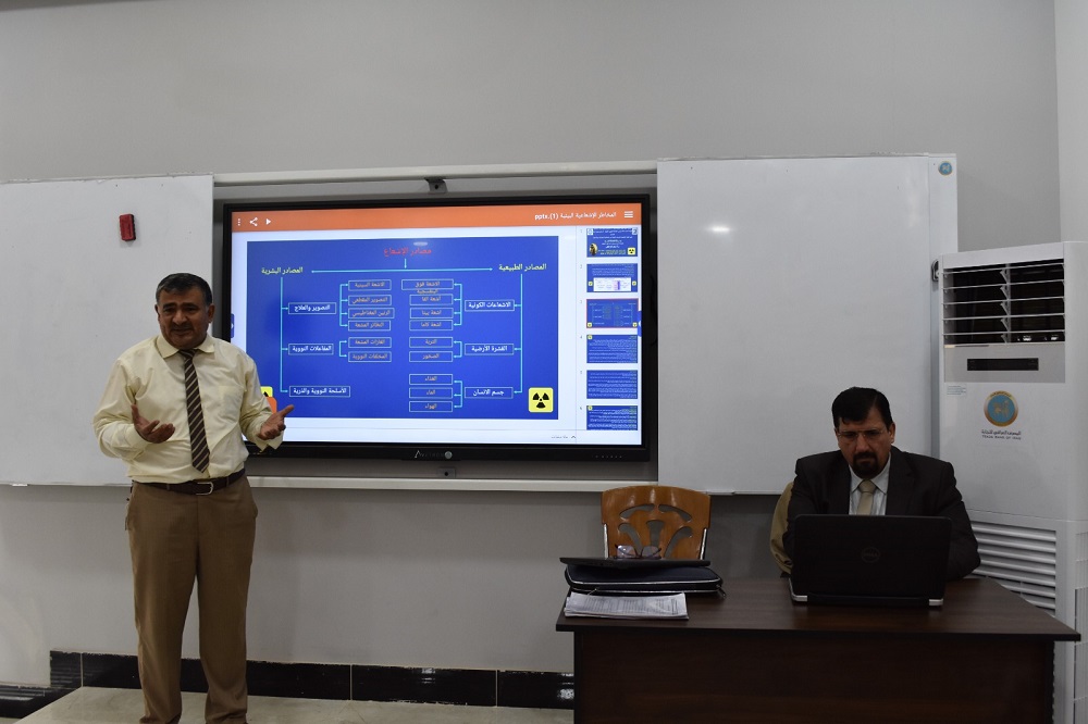 اقامت كلية الإدارة والاقتصاد بجامعة ديالى بالتعاون مع شعبة السلامة والامن الكيمياوي والبيولوجي والاشعاعي في رئاسة الجامعة ندوة علمية بعنوان ( المخاطر الاشعاعية البيئية) ، حاضر فيها الأستاذ المساعد الدكتور فيصل غازي حمودي والأستاذ المساعد الدكتور عمر احمد موفق.