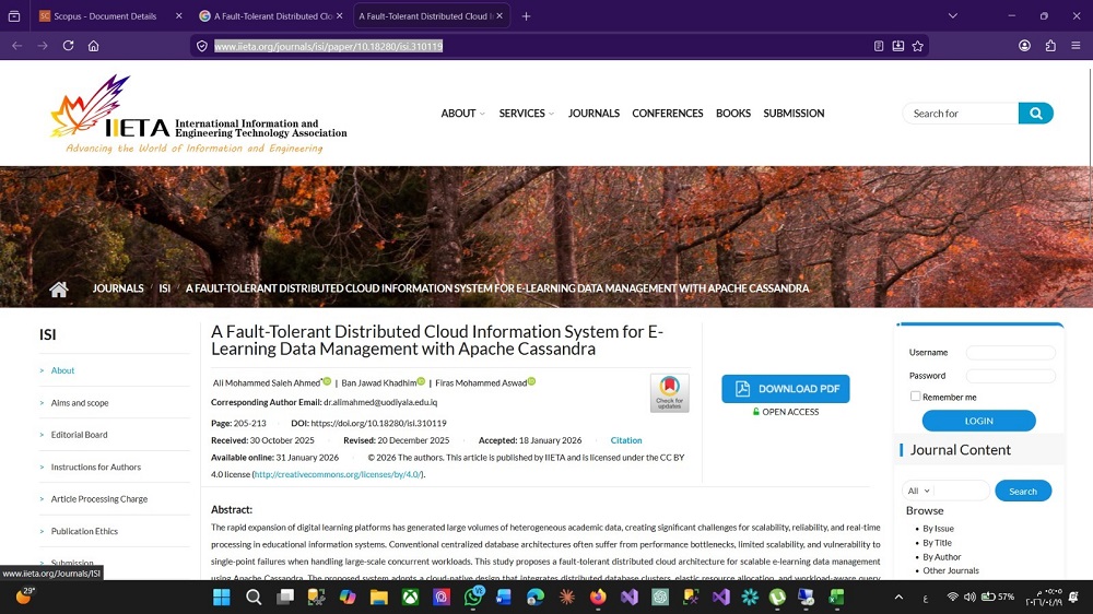 وتقترح الدراسة معمارية سحابية موزعة وقابلة لتحمل الأعطال لإدارة بيانات التعلّم الإلكتروني بشكل قابل للتوسع باستخدام Apache Cassandra. ويعتمد النظام المقترح على تصميم سحابي أصلي يدمج بين عناقيد قواعد البيانات الموزعة، والتخصيص المرن للموارد، وتحسين الاستعلامات وفقًا لطبيعة عبء العمل.