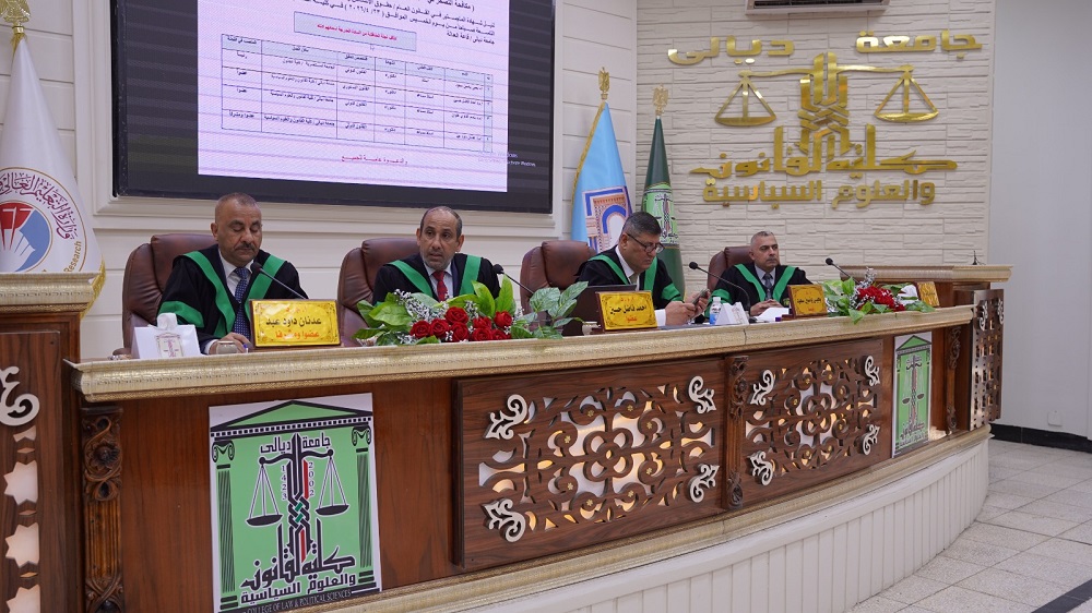 ناقشت رسالة ماجستير في كلية القانون والعلوم السياسية بجامعة ديالى، مكافحة التصحر في ضوء احكام القانون الدولي واثره في حق الانسان بيئة سليمة.