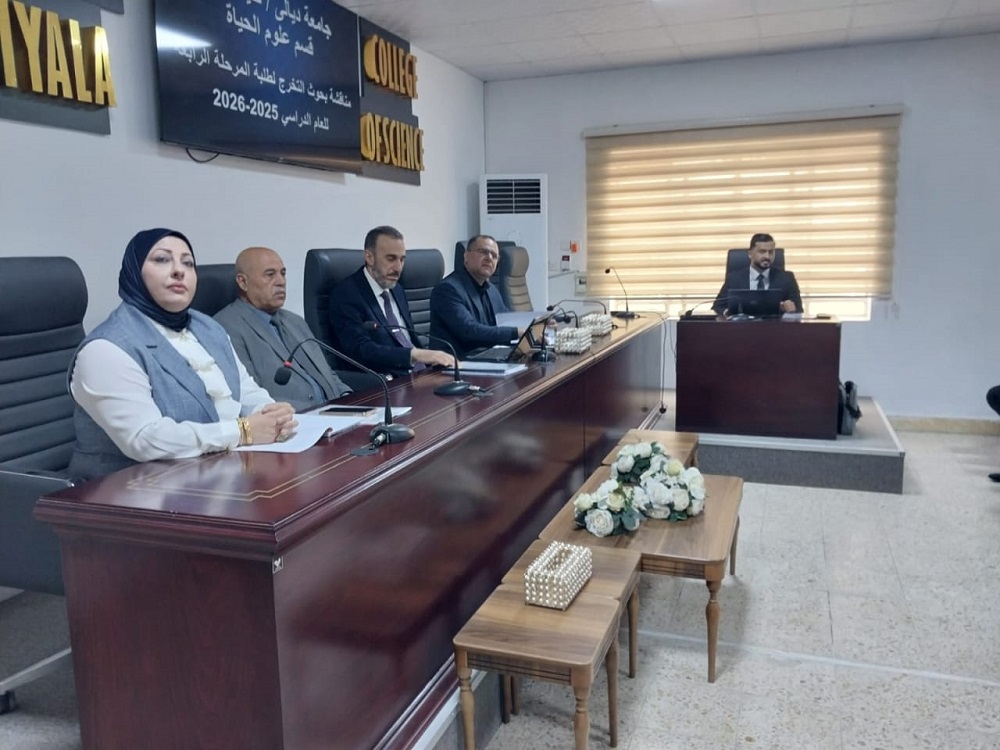 ناقش قسم علوم الحياة في كلية العلوم بجامعة ديالى بحوث تخرج طلبة المرحلة الرابعة، بحضور عدد من التدريسيين واللجان العلمية المختصة، ضمن إطار السعي لتعزيز الجانب البحثي والتطبيقي لدى الطلبة.