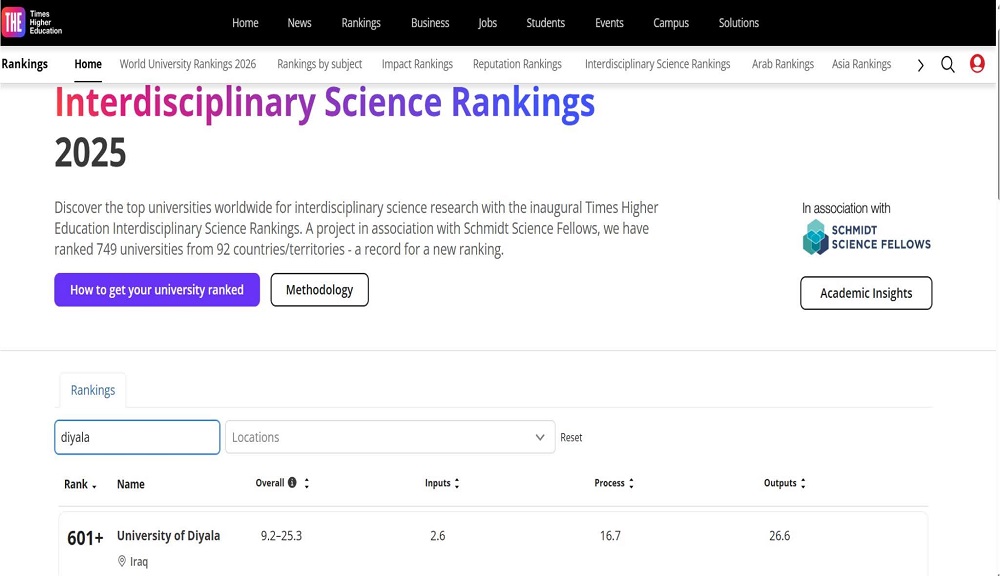 حققت جامعة ديالى إنجازاً نوعياً بدخولها ولأول مرة في تاريخها تصنيف التايمز العالمي للعلوم متعددة التخصصات لسنة 2025 في خطوة تؤكد قدرتها على المنافسة الإقليمية والدولية وفاعليتها العلمية المتصاعدة. فمن بين أكثر من 135جامعة عراقية، حصلت الجامعة على المرتبة السادسة …