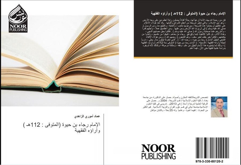 صدر للتدريسي من كلية التربية للعلوم الانسانية في جامعة ديالى الاستاذ الدكتور عماد اموري جليل الزاهدي ، كتاب بعنوان ( الامام رجاء بن حيوة ( ت 112 هـ ) وآراؤه الفقهية ) عن المؤسسة العلمية ( نور نشر ) في المانيا .